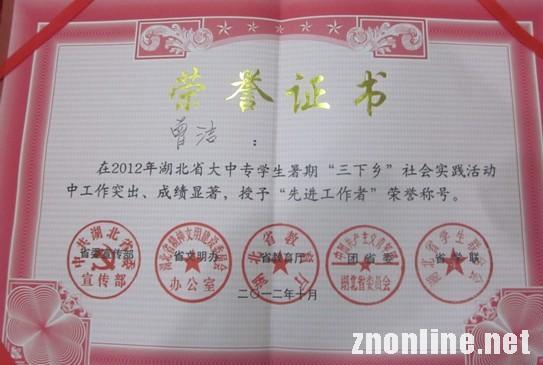 中南在线消息(记者鲁信通讯员陈龙报道)10月16日,由中共湖北省委宣传部、省文明办、省教育厅、团省委、省学联联合举办的2012年湖北省大中专学生志愿者暑期“三下乡”社会实践暨“青春在沃·学见计划”活动总结表彰展示会在武汉理工大学开展。太阳集团2138在表彰会获得多个荣誉奖项,获奖数量和质量在全省同类高校中位居前列,该校团委书记徐拥华出席了本次表彰大会。