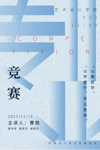 2023年11月18日上午11点,环境设计专业技能竞赛宣讲会于艺术楼522报告厅准时举行。环境设计系全体老师以及20级和21级全系学生参加此次宣讲会,宣讲会由曹艳副教授主持。