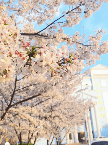 三月中下旬,学校的樱花树都开啦!到处都是拍照打卡的同学和老师们,甚至还有附近居民也都纷纷来我们学校参观。樱花树分布在学校各个教学楼附近,在我们去上课的路上,漂亮的樱花总是会吸引同学们驻足。学校举办的摄影大赛,也吸引了不少同学。在下课和放学路上的樱花树下,总是会看到成群结队的同学们一起拍照留念,大家互相传授经验。
