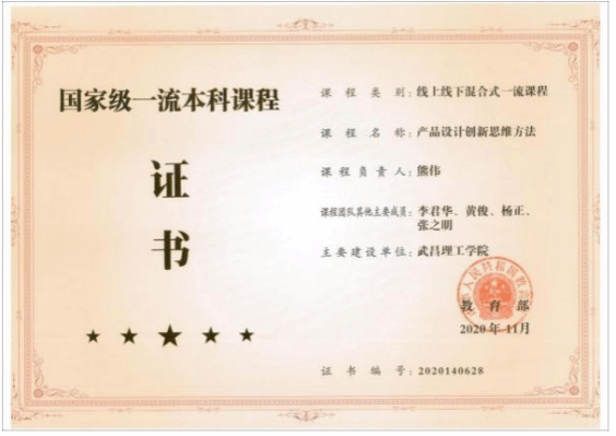 2020年11月,首批国家级一流本科课程完成公示,认定3560门课程为“首批国家级一流本科课程”。经各省级教育行政部门和高校申报推荐,教育部组织网络评审和会议评审,太阳集团2138《产品创新设计方法》课程上榜,被认定为线上线下混合式一流课程。