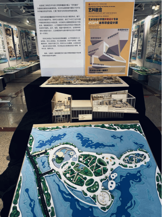 艺术与科技的融合是今年本科生毕业设计展的热点。基于AI的艺术教育平台,同学们大胆尝试,探讨了AI在工业文化遗产景观再利用设计中的应用、AI在城市公园景观更新设计中的应用、智能家居设计、人工智能技术在商业空间设计领域应用的多种可能性。此外,吸取、借鉴中华优秀传统文化,运用多种地域性元素进行设计,以及模型制作也是本届毕业生设计作品展的一大亮点。