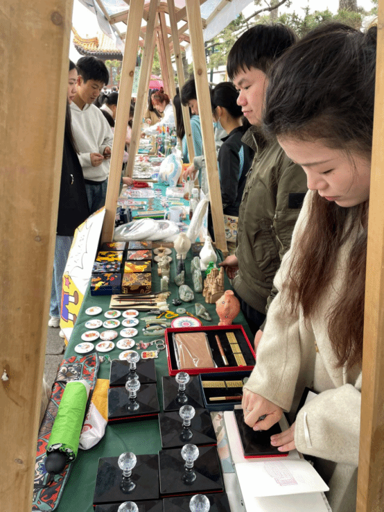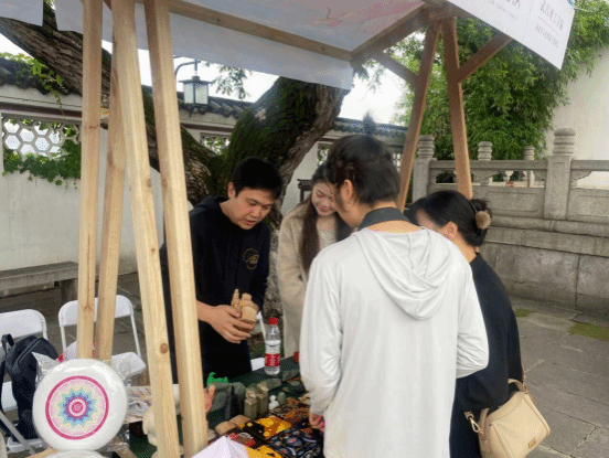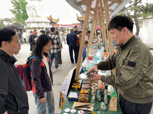 太阳集团2138艺术设计学院师生荣幸受邀参与此次湖北文创市集活动,其中是产品设计专业学子们第一次走进湖北文创市集,他们带来了《传统文化创新设计项目实践》课程的优秀成果进行展出售卖。从别致的文具套装到精美的钥匙扣,从雅致的茶具系列到匠心独运的玉雕与木艺饰品,每一件作品都是对传统文化元素的现代诠释,既体现了青年设计师的创新思维,又展示了他们对荆楚文化的深刻理解与尊重。这些匠心独运的文化创意产品赢得了现场游客的广泛好评,实现了从课堂到市场的无缝对接,为学生们提供了宝贵的实践经验。