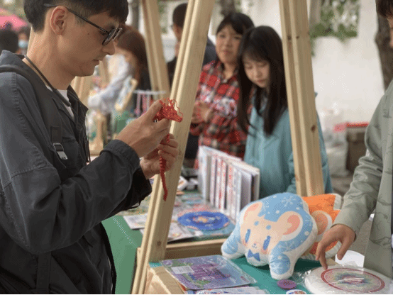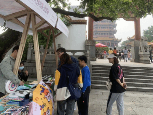 视传系朱丹阳老师、董紫阳老师和程萍老师带队前往黄鹤楼公园,本次文创市集挑选的文创作品来自艺术设计学院文创设计研发中心、视觉传达设计专业直属社团-原动力创意协会,引来了不同年龄段的游客驻足打卡。