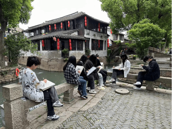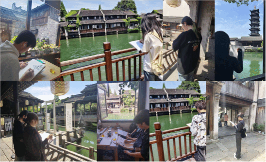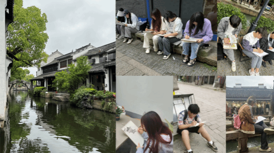 在这个春意盎然的季节里,产品设计系23级74名新生学子由梁雅迪、潘思颖老师带领下于2024年4月15日至4月26日赴苏州甪直古镇、南浔古镇、黎里古镇、乌镇、上海等地进行为期两周的写生实践课程,旨在通过实地写生,让学生们深入体验和学习江南水乡的独特魅力以及现代都市的文化氛围。