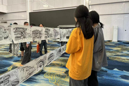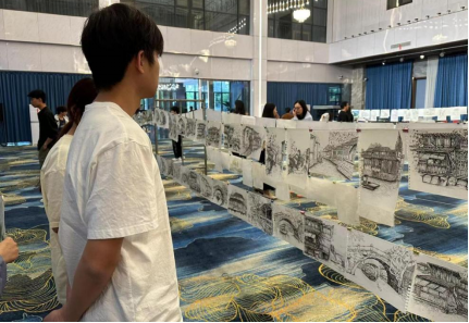 随着两周写生课程的结束,许多同学都绘制出了优秀的写生作品,并举办了写生优秀作品展。不少同学前来参观和学习。