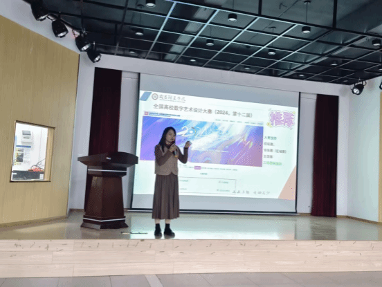在成果展示环节,给同学们分享了往届获奖学生的参赛作品,这些作品不仅展现了动画系学生的专业技能和创新思维,也赢得了现场师生的热烈反响。这些成果不仅是对动画系教学质量的有力证明,也为即将踏上竞赛征程的学生们提供了宝贵的参考和启发。宣讲会的压轴环节是对即将到来的国内外动画竞赛的详细介绍。老师们详细解读了各项赛事的规则、流程和奖项设置,鼓励学生们积极参与,挑战自我,展现才华。
