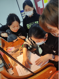 (陈月敏老师与同学们交流制作过程中的问题)