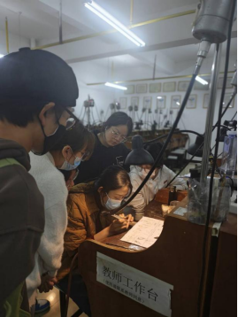 (李庆老师为学生讲解制作过程)