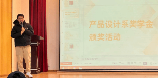 产品设计系奖学金颁奖典礼开幕在此次产品设计专业奖学金颁奖活动中,产品设计系主任陈琛老师详细阐述了奖学金设立的初衷,强调其旨在激励学生积极投身设计领域的创新与实践,进一步推动产品设计人才的培养与发展。奖学金评选细则通过产品设计创新协会公众号进行公示,评选标准全面涵盖学术成绩、创新实践能力以及综合素质评价等多个方面,确保整个评选过程公平公正、科学合理。这一举措充分体现了艺术设计学院产品设计专业在人才培养方面的坚定决心和殷切期望,不仅为学生提供了展示自我、提升能力的平台,也为培养高素质设计人才注入了强劲动力。