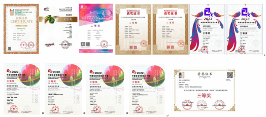 2、学生竞赛成绩优异:在2022-2024年间,胡姝帆老师及其团队指导学生参加全国高校数字艺术设计大赛、米兰设计周作品展、华灿奖、大广赛等权威赛事,荣获 30 余项等级奖,有力证明了学生 UI 设计综合能力的显著提升。
