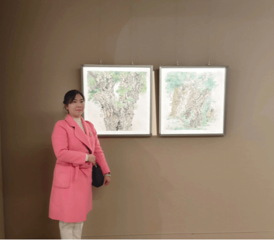 作品《素华》《蓊郁》展现了女性艺术家对生命、自然与社会的深刻思考。作品通过对樟树顽强生命力与繁茂姿态的描绘,寓意着女性在艺术道路上坚韧不拔的精神追求,画中樟树的枝叶相互交织,仿佛在诉说着女性艺术家们彼此之间的情感共鸣与精神支持。观众们在欣赏完作品后表示,感受到了一种强大的生命力和女性艺术家独特的艺术魅力。