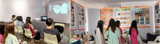 展览现场一件件精美的作品如同一扇扇通往奇幻世界的窗口,吸引着众多师生驻足观赏。动画设计作品以其流畅的画风和生动的情节,让观众沉浸其中,感受动画的魅力;插画绘本则以细腻的笔触和丰富的色彩,讲述着一个个动人的故事,引发共鸣;交互设计作品更是凭借创新的交互方式,为观众带来了全新的体验;而游戏概念设计作品则以精妙的创意和完整的架构,展现了一个个充满想象力的游戏世界。在作品展示的同时,同学们也积极地向观众介绍自己的创作思路和过程,分享创作中的酸甜苦辣。他们用热情和自信阐述着作品背后的理念,让观众更加深入地理解了作品的内涵。