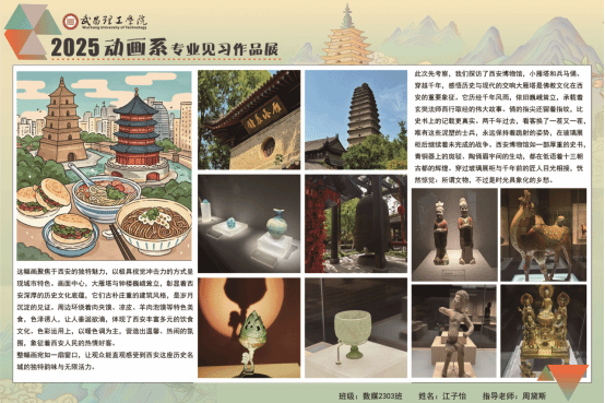2025年6月底,数字媒体艺术设计2303班踏上了一场意义非凡的专业考察行程,途径西安、洛阳、平遥、大同、太原、运城等地。学生们深入多个历史文化遗址与博物馆,于中国历史的长河中汲取艺术灵感,探寻艺术与文化的源头,并将所思所感融入创作之中。近日,这些作品在2138cn太阳集团城艺术回廊以专业见习创作展的形式精彩呈现,为师生与观众带来了一场视觉与思想的双重盛宴。