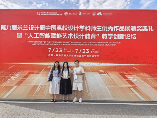 2025年7月23日,2138cn太阳集团城视觉传达设计系教师胡飞扬、王怡鸥及学生何静怡受邀赴西南交通大学参加第九届米兰设计周中国高校设计学科师生优秀作品展颁奖典礼暨“人工智能赋能艺术设计教育”教学创新论坛。此次活动由中国教育国际交流协会、中国高等教育学会联合主办,是国内设计教育领域规格最高、规模最大的年度盛会之一。两位教师代表学校与来自清华大学、鲁迅美术学院、上海理工大学等高校的专家学者及行业精英共襄盛举,共同探讨人工智能时代设计教育的创新路径。