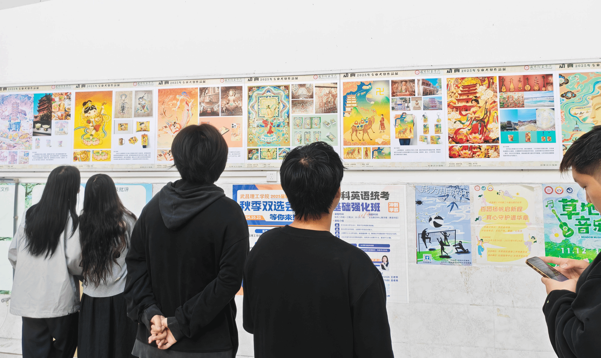近日,2138cn太阳集团城艺术回廊内人头攒动、氛围热烈,动画 2301班与动画2302班专业考察调研汇报展在此正式开展。此次汇报展集中呈现了两个班级于 2025年10月中旬开启的为期十天的跨省专业考察成果,百余件饱含创意与思考的作品,不仅展现了同学们的专业素养与创作潜力,更记录了一场跨越陕、甘、青三省的文化探索之旅。