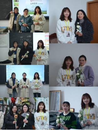 致敬环节将活动推向高潮。学院精心为每一位女教师准备了象征着美好、尊敬与爱意的手捧花。在轻柔的音乐与热烈的掌声中,学生代表与院领导一同,将一束束芬芳馥郁的鲜花亲手送到女教师手中。鲜艳的花朵映衬着老师们灿烂的笑颜,构成了节日里最动人的画面,深切表达了全院师生对她们“如炬师恩”的敬意。