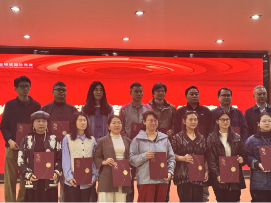 致辞环节结束后,现场进行了简短的颁奖与授聘仪式。周智秘书长向合作院校颁发感谢状,由艺术设计学院副院长王欣代表学院接受;评审团主席薛振添为湖北省区推广教师颁发了聘书;副院长周承君则为各合办单位颁发感谢状,品牌代表一一上台领奖。