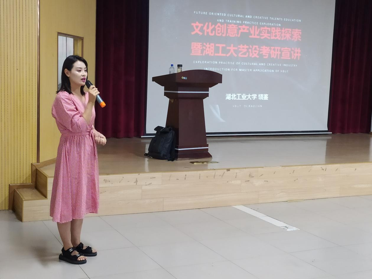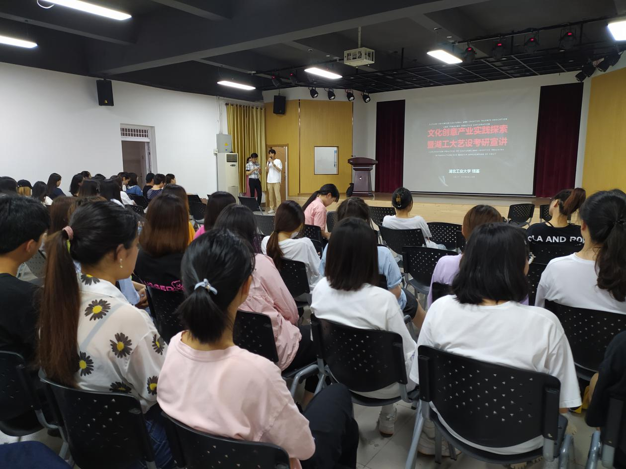 2021年6月21日,由艺术设计学院主办的文创产业实践探索暨湖北工业大学艺术设计学院考研指导的讲座,在艺术设计学院522报告厅顺利举办。湖北工业大学教授、博士、博士生导师,湖北工业大学南湖学者学术带头人,湖北工业大学艺术设计学院副院长,国家社科基金评审专家饶鉴担任本次主讲人,同时出席本次讲座的有艺术设计学院科研副院长宗林;视觉传达系主任李佳龙与系教师代表:陈静、黄菁、何华、杨梦姗、胡飞扬、黄岩参会;我院各专业22届毕业班学生与20级考研班学生近200人参会。