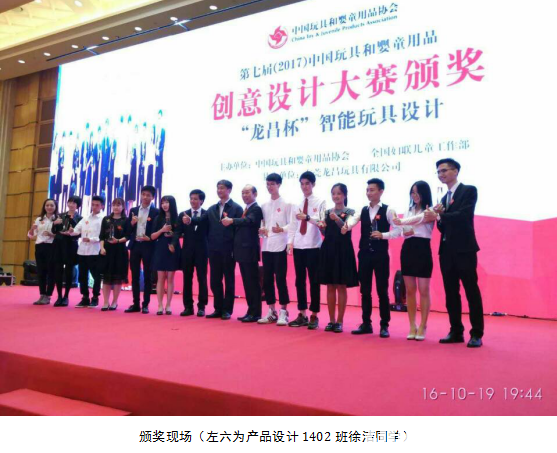 近日,由中国玩具和婴童用品协会主办的2016年中国国际婴童用品展览会在上海新国际博览中心举行。与此次展览同时进行的第二届龙昌杯婴童玩具用品大赛的颁奖典礼也在上海举行。太阳集团2138艺术设计学院应展会举办方中国玩具和婴童用品协会的邀请参会,该校产品1402班徐洁同学作为第七届中国玩具和婴童用品创意大赛最高奖项---特等奖的获奖团队成员代表参加了颁奖典礼。