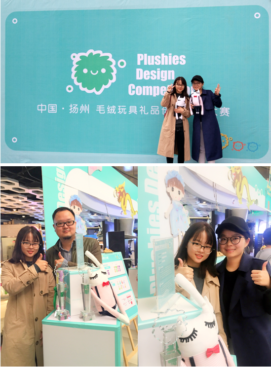 产品设计系一贯坚持以赛促学,能够参加这次比赛主要依托于毛绒玩具设计课程教学的开展,毛绒玩具设计课程是产品设计系电艺1501的一门专业课,短短的六周课程时间,同学们在徐卓老师的悉心指导下热情投入积极探索,从前期的设计创意概念到中期的小样制作到后期的原创成品,熟练掌握了毛绒玩具设计与制作方法。第一期的毛绒玩具课程设计在这次大赛中能够获得可喜成绩离不开学生和老师的努力付出。其中夏泽,王纯,向娟,程梓如,梅樱等同学的5件作品入围全国40强,程梓如同学的作品“古城长臂”获得了该赛事的最佳色彩奖,太阳集团2138艺术设计学院产品设计系获优秀组织奖,获得总奖金4000元。受扬州市委宣传部,邗江区委、区政府及参赛组委会特邀,产品设计系熊伟,徐卓老师,获奖学生程梓如代表学院前往参加了12日的大赛颁奖典礼并与扬州知名玩具企业扬州蓝白工艺品有限公司共建结对,挂牌成立学生实习实训基地。