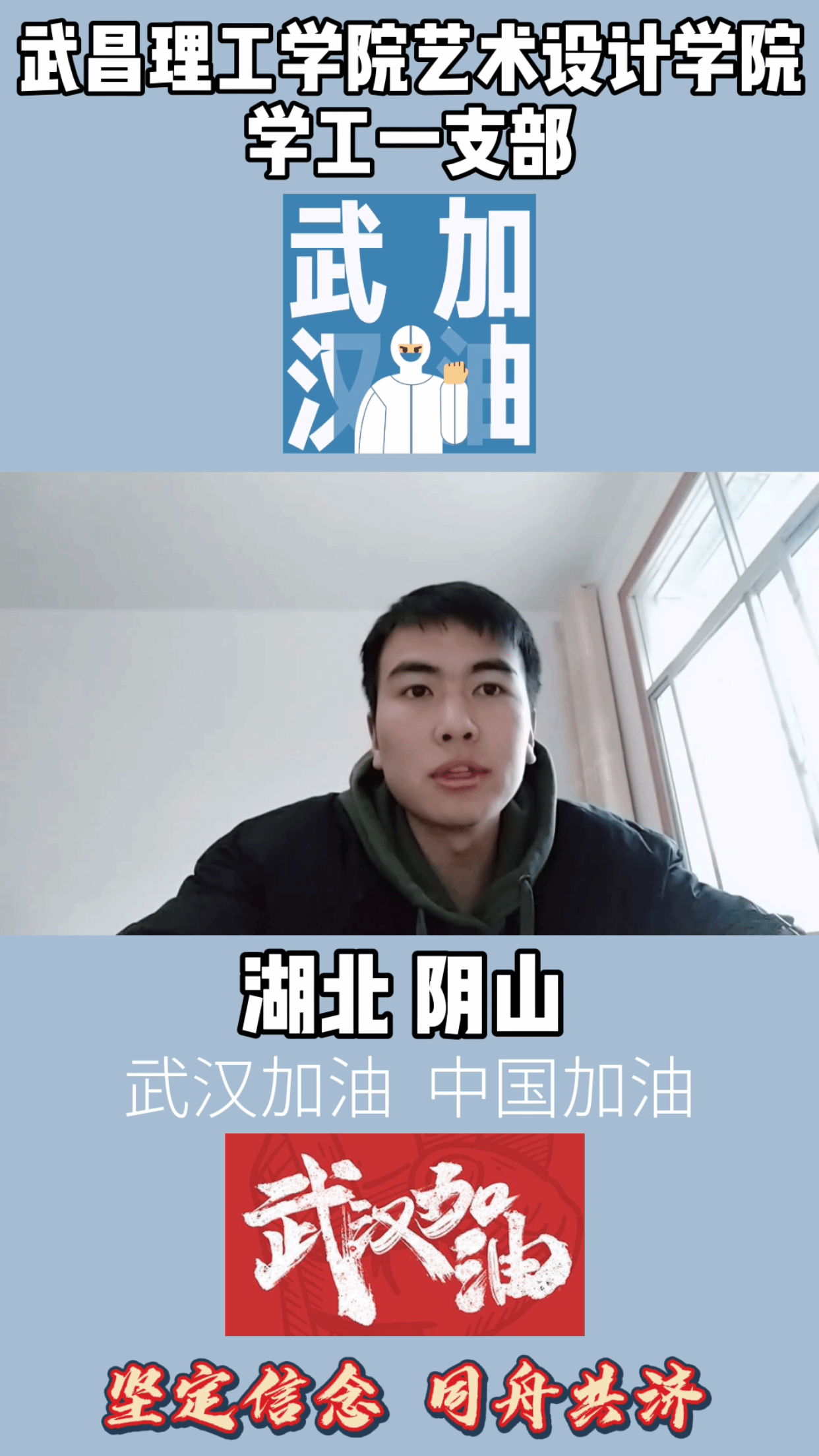 除此之外,艺术设计学院学工一支部还为此次疫情拍摄了加油视频,他们身在故乡心系武汉,为武汉加油为中国加油,虽然一些学生党员未能投入到疫情工作中,但是他们表示他们是防控疫情背后最坚强的后盾,时刻准备着。