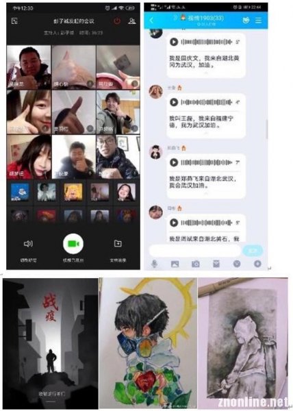 班会接近尾声时,素导和各班团支书以班级为单位,带领同学们在各自班群中进行班级作品欣赏。其中视传1903班在班级QQ群里每人录制了一句为武汉加油的话语,并且在视频中统一竖起大拇指,为武汉加油打气。工美1901班的三位同学以小视频、水彩、手抄报、书法等不同的形式为武汉加油。视传1901班的同学用自创的字体,书写励志语句为武汉加油,同时绘制了四副人物肖像板绘图传达了对于医护人员的关怀和尊敬。视传1904班、动画1901班分别剪辑了视频,为武汉送上祝福。通过本次班会,同学深刻了解开展网络教学的意义,同时线上教学也促进了疫情期间的师生交流。