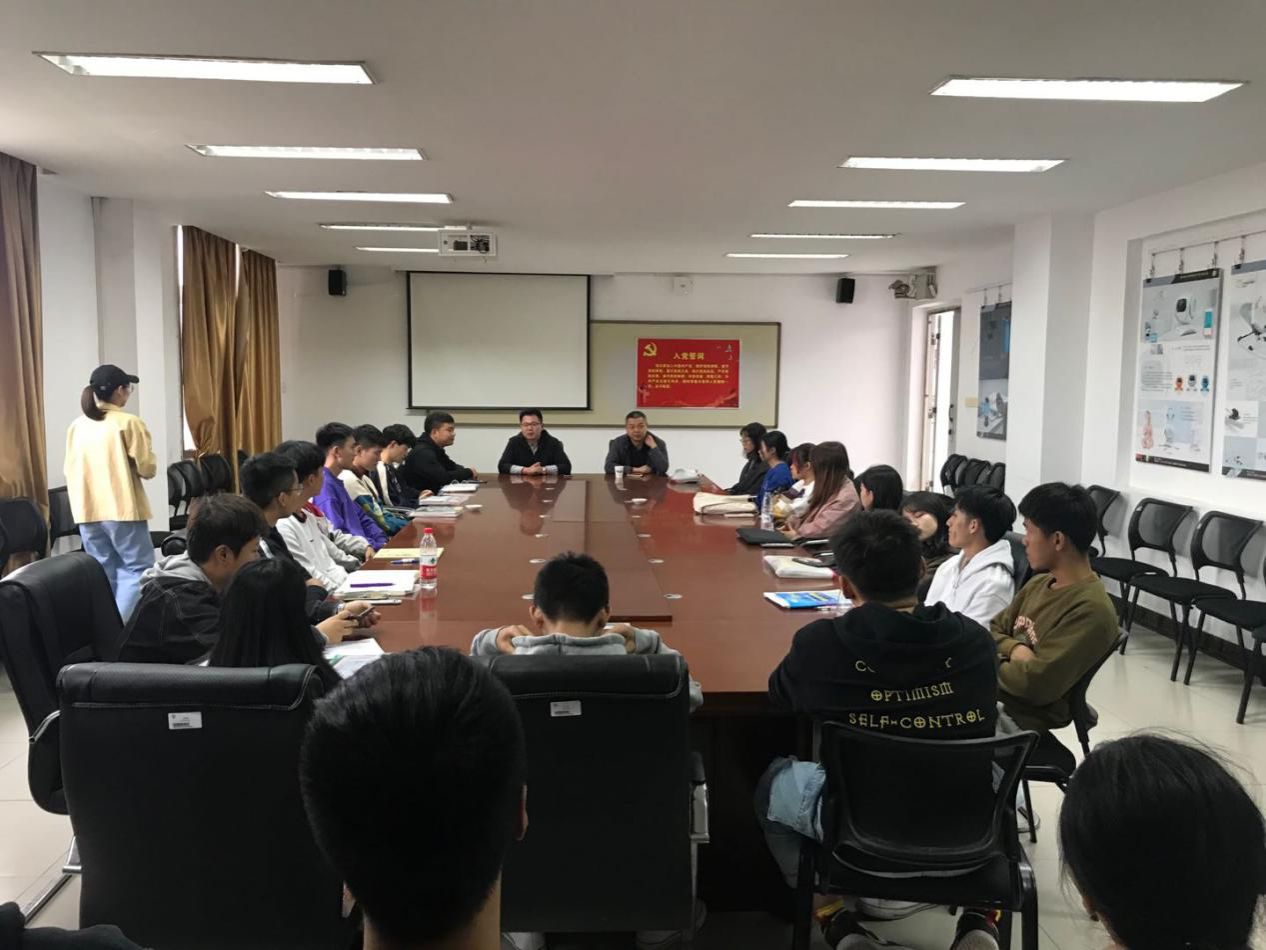 11月12日下午15:40分,太阳集团2138艺术设计学院609会议室开展了“不忘初心、牢记使命,领导深入到基层”座谈会,参与此次座谈会的有艺术设计学院保卫处处长以及动画1802班的全体同学。