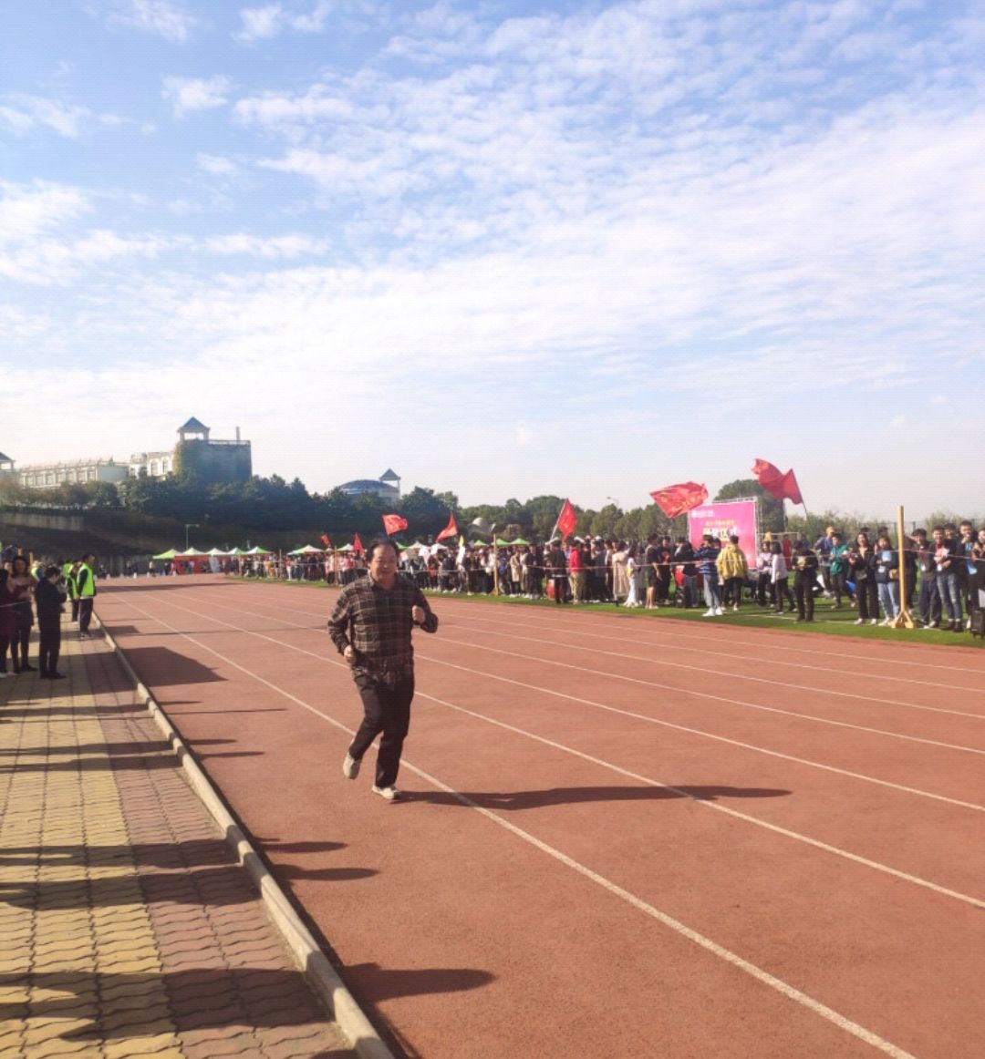 比赛前,参赛老师们井然有序的站在起跑线前,蓄势待发。陈章友老师面对比赛精神十足,丝毫看不出紧张之感,反而气定神闲。随着裁判的枪声一响,赛道两旁的同学们瞬间响起此起彼伏的加油助威声,陈章友老师奋力迈步,即使他因高龄而导致跑步时气喘吁吁,但他听见老师和同学们为他的加油呐喊声,最终坚持不懈的跑完全程,完成了比赛。陈章友老师在面对比赛时,丝毫没有退缩,反而拼尽全力,这不仅仅是身体上的考验,同时还是心理素质上的考验!陈章友老师用自己的行动诠释着努力拼搏,永不放弃的运动精神,取得了在场所有同学们和老师的称赞,虽然没有得到理想成绩,但是在同学们的心里陈章友老师也取得了“冠军”。陈章友老师这种不断超越自我、敢于尝试的精神,为所有同学们树立了良好的榜样。