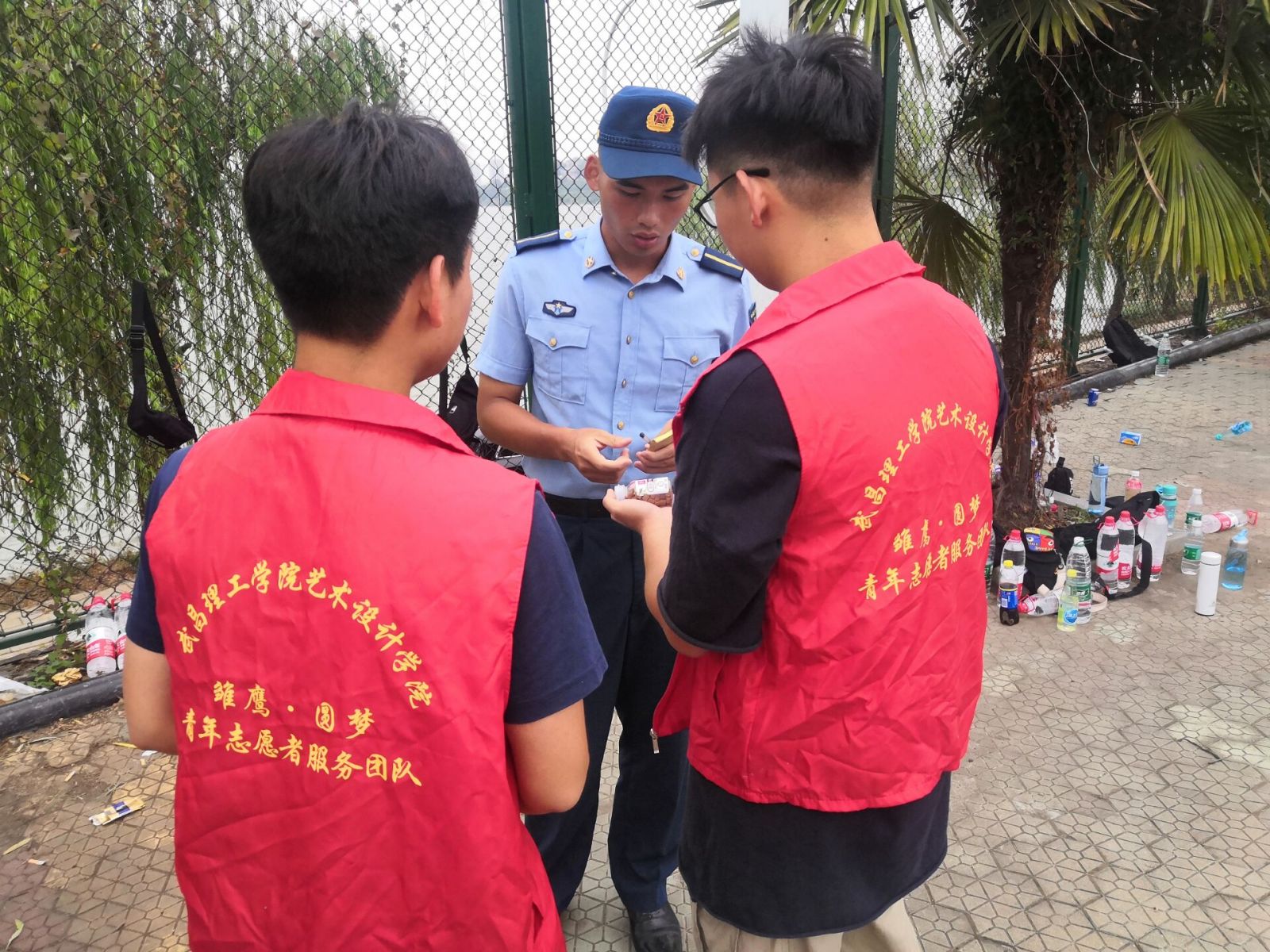 上午8:30分,早上的气温已慢慢升腾起来,此时的教官们正在沙哑的呼喊着进行指挥,学生们刚劲有力的回应着口号,他们整齐划一,努力的压着脚步,缓缓徐进。操场上一片片的迷彩色方队,围绕着塑胶跑道有序排列着,别有一番滋味。为避免打扰到教官军训,志愿者们决定在艺术设计学院帐篷处,耐心着等待着中途休息时间,为教官们送上这份浅薄的礼品。一声哨响,所有方队动作戛然而止,等待着总教官的喊话,一切尘埃落定,志愿者们拿上精心准备的湿水巾,水与润喉糖,纷纷走向教官,为他们递上一份纸巾,送上手中的水与润喉糖,对他们说上一句“教官,您辛苦了!”看着教官漏出开心的笑容,志愿者们才深深鞠上一躬,与教官告别。