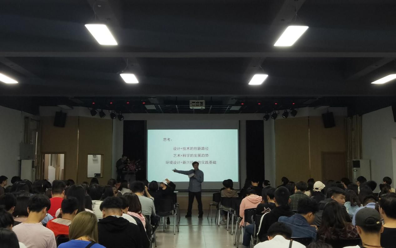 大会伊始,在同学们热烈的掌声中,主讲人黄建军教授首先介绍了本次讲座的主要内容。提出环境艺术设计专业分为两个体系,以及两个方向。在讲座开始前,黄建军教授让同学们先思考了三个问题:设计加技术的创新路径、艺术加科学的发展趋势、环境设计加新兴技术的实践基础。他在讲解的过程中鼓励同学要在设计中多交流,要有独特的艺术思想和眼界,并且要多接触与专业有关联的事物。在本次讲座中,黄建军教授也给同学们分享了优秀的设计案例。他提出好的设计案例是要历经长时间的修改和亲身进行实地考察调研才得出来的,这才是新兴的设计发展趋势。