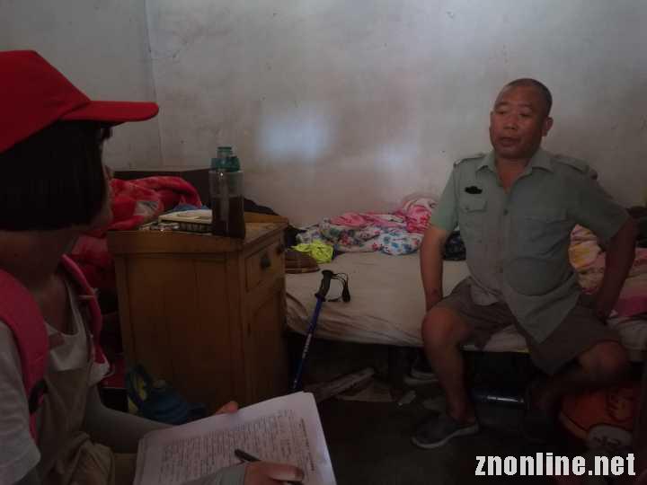 实践队员在走访的过程中,一间破旧房子中的一位老人引起了实践队员的注意,老人请实践队员们进屋坐,实践队员走进屋和老人交流,在和老人沟通过程中,实践队员们了解到,老人一生未婚,无儿无女,生活全部由自己一人打理,平常没有经济来源,当实践队员问道平常开销的钱从哪来时,老人说到:“以前我还可以做生意,现在眼睛也看不见了,腿也行动不便没有任何的经济来源,开销都是网上一些爱心人士的捐款,吃的菜都是靠邻居的接济来填饱肚子,平常也不能出去串串门聊聊天,就靠着一台收音机来打发生活,现在最大的愿望就是能够看好我的病。”临走前,老人对实践队员说:“感谢社会和你们这些志愿者们对我们这些老人的关心,让我们这些“空巢老人”感受到了温暖,让我看到了希望。”