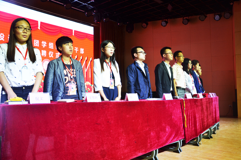 受聘仪式在庄严的国歌中拉开序幕,艺术设计学院团委喻俊书记在宣读了《关于艺术设计学院第十一届第一任团学组织副部级及以上学生干部的任免决定》后依此逐级为学生干部颁发了聘书和工作证。而后,在新一届团委学生副书记、学生会主席周雅兰的带领下该院第十一届第一任团学组织主要学生干部面对团徽和学生会会徽庄严宣誓,他们表示将用他们的热忱、责任、勇气为学生工作燃烧自己的青春,奉献自己的力量。随后,上一届团委、学生会代表,学生会主席郭青在会上发言。她总结了一年以来的团学组织工作,并从学生干部的表率性、如何处理好工作和学习的关系、如何处理好班级和同学关系等方面给新一届学生干部提出了几点希望。接着新一届团委、学生会代表,学生会主席周雅兰在大会上发言。她从继承与发展的角度表达了新一届团学组织的工作思路,提出会总结以往好的经验做法,传承优良传统,破解瓶颈,拓宽思路,不断创新管理方法,推动团学工作的快速发展。