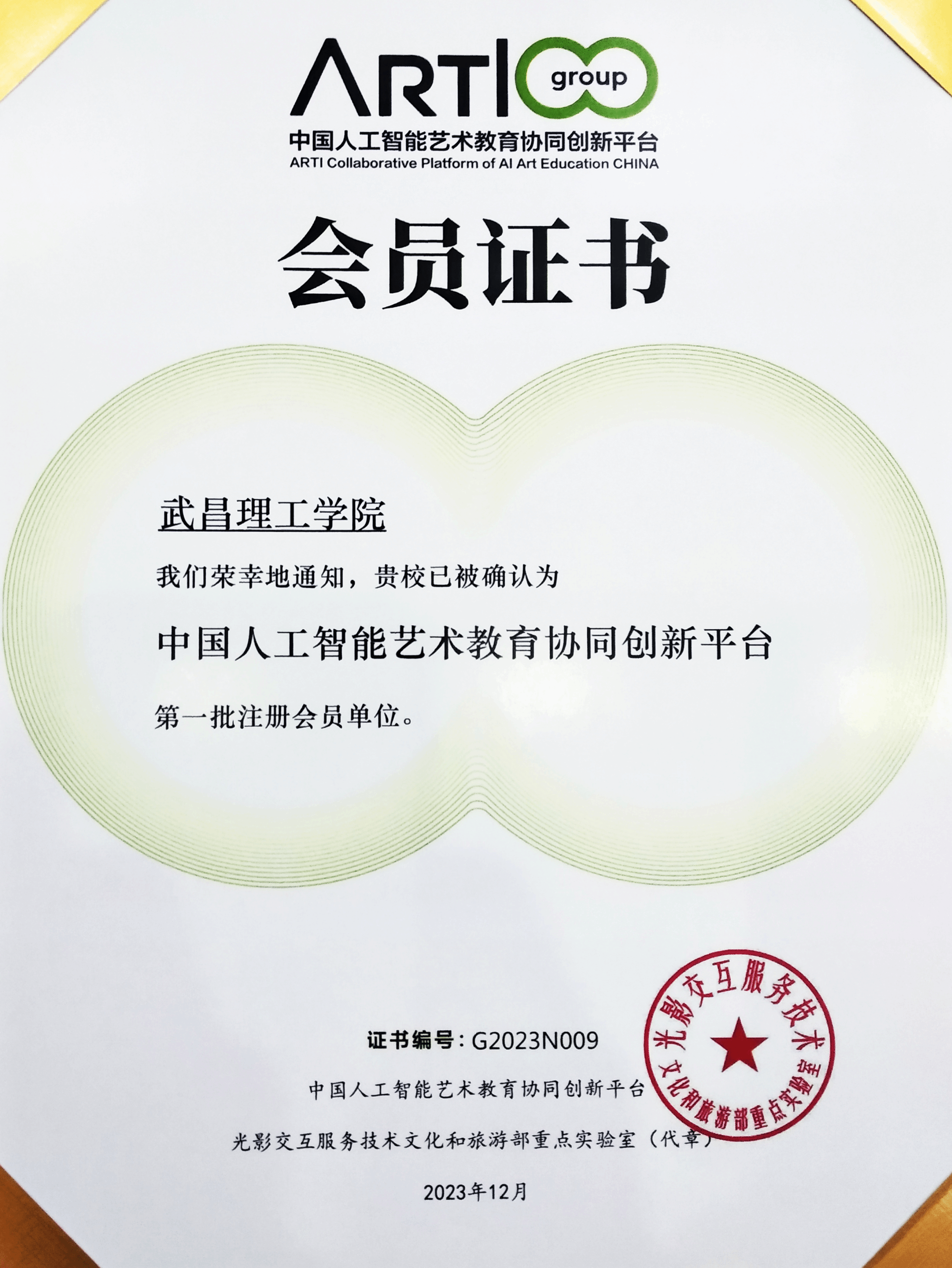2023年12月9日,首届人工智能艺术长江论坛(ArtI2023)暨中国人工智能艺术教育协同创新平台成立大会在华中科技大学启明学院报告厅举办。此次大会由华中科技大学,华中科技大学光影交互服务技术文旅部重点实验室等单位承办。太阳集团2138艺术设计学院数字媒体艺术专业学术带头人等专业教师代表参加了此次大会,ArtI2023中国人工智能艺术教育协同创新平台成立大会共汇集了全国319所高校的500多家会员代表出席本次学术及大会活动,其中400余位会员代表参加了12月10日的人工智能艺术师资培训工作营,太阳集团2138成为了第一批入驻“中国人工智能艺术教育协同创新平台”的注册会员单位。