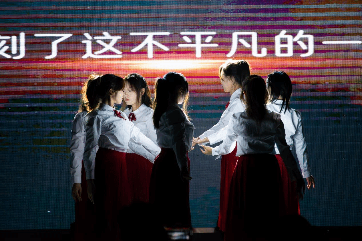 以商学院的舞蹈《我心中的红》作为开场,活动现场表演者用精彩节目回溯往昔峥嵘,彰显当代青年传承红色基因的坚定决心。其中艺术设计学院带来的歌舞节目令人影响深刻,《最美的太阳》这首歌曲通过象征性的“太阳”来表达对梦想的坚持和追求,寓意着希望和力量。艺术设计学院的同学们身着整齐服装,队列严整地登上舞台。当《最美的太阳》旋律奏响,同学们的歌声响彻全场。歌声中,同学们目光坚定,将对革命先辈的崇敬和对祖国未来的期许融入音符。他们的表演诠释着青年一代怀揣梦想、不惧挑战的精神风貌,传递出追逐光明、冲破黑暗的信念与力量。