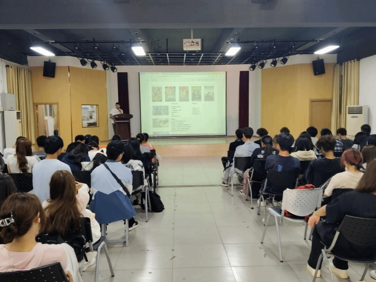 讲座上,胡冠中校友简单介绍了自己,作为艺术设计学院环艺 0904 班毕业生,现任职于长丰师范学校附属小学,担任教师职务,在校期间积极参与学生工作,曾任艺术学院团委组织部副部长。毕业后,他在教育领域取得了显著成就。并且着重强调了教育事业的伟大意义和深远价值,他指出,教育是塑造灵魂的工程,每一位教育工作者都肩负着培育祖国未来栋梁的神圣使命。他结合自身经历,鼓励同学们要对自己的专业充满热爱,只有热爱才能激发无限的创造力和潜能,在教育领域,要以耐心、爱心和责任心去呵护每一位学生的成长,用坚持和努力书写属于自己的教育华章。
