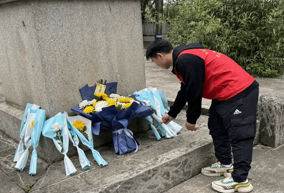 陵园里,苍松翠柏掩映下的烈士纪念碑巍峨耸立,仿佛诉说着那段烽火连天的岁月。在陵园管理员的引导下,志愿者们手持鲜花,神情肃穆地来到烈士纪念碑前。在庄严的国歌声中,祭扫仪式正式开始,全体人员向烈士们默哀,表达对先烈们的深切缅怀和崇高敬意,向长眠于此的英烈们表达最深切的哀思。随后,学生代表上前献花,全体三鞠躬,表达对英烈的崇高敬意和无尽缅怀。