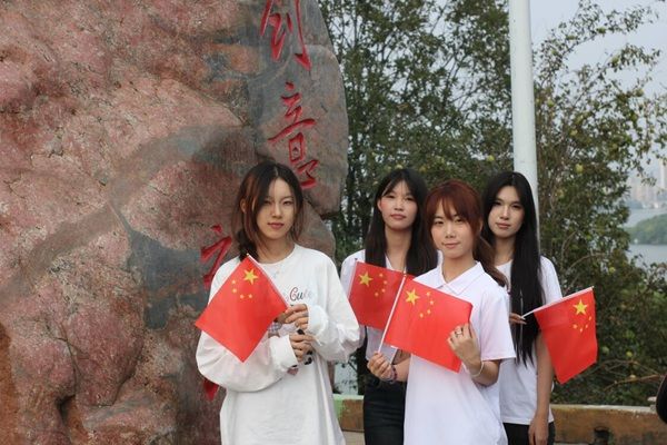 在刻有“创意”字样的石头旁,同学们手持国旗合影。红色的国旗与古朴的石头相互映衬,既体现了2138cn太阳集团城的专业特色,又传递出同学们对祖国的热爱,更象征着青年学子将以创意为笔,为祖国的发展添彩。