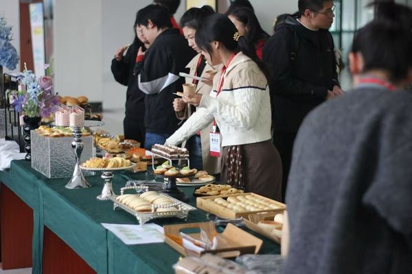 在会议的短暂间歇期间,图书馆内特别设置的茶歇角落,以其温馨雅致的氛围,悄然成为了一道引人注目的风景线。志愿者们负责甜点的搬运与精心摆盘,这里,各式各样的精致甜点与色彩缤纷的饮品井然有序地陈列着,不仅令人垂涎欲滴,更在视觉上带来愉悦享受。而这番美好景象的背后,凝聚了众多志愿者们默默付出的心血与努力。他们以极其细致入微的服务态度,精心策划并布置了这一区域,旨在为参会嘉宾们在紧张而密集的学术研讨之余,提供一个放松身心的理想场所。嘉宾们可以切感受到大会主办方所传递出的人文关怀与温情,从而以更加饱满的精神状态投入到接下来的会议议程中。